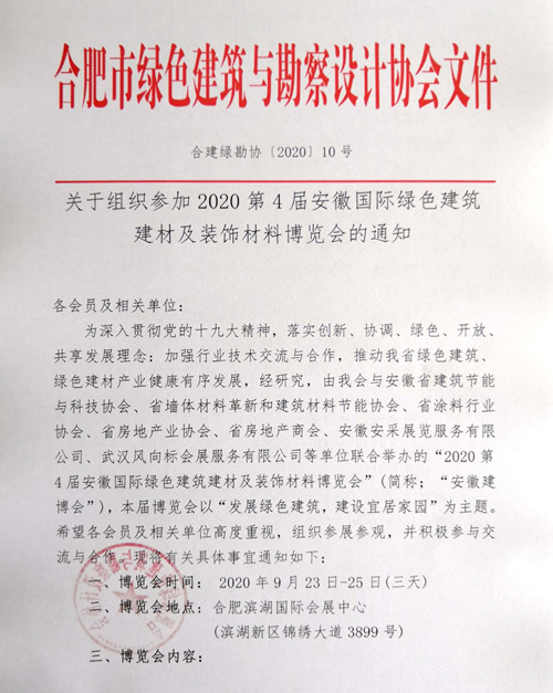关于组织参加2020第4届安徽国际绿色建筑建材及装饰材料博览会的通知.pdf