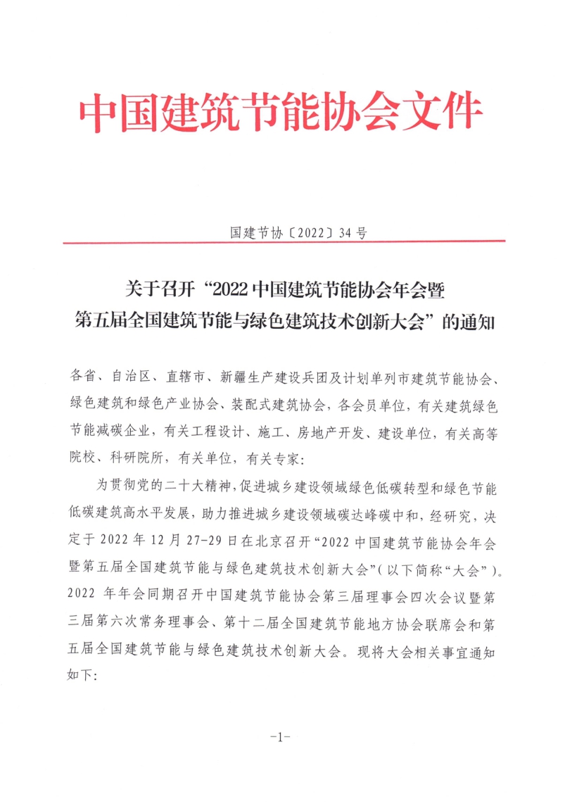转发“关于召开2022中国建筑节能协会年会暨第五届全国建筑节能与绿色建筑技术创新大会”的通知