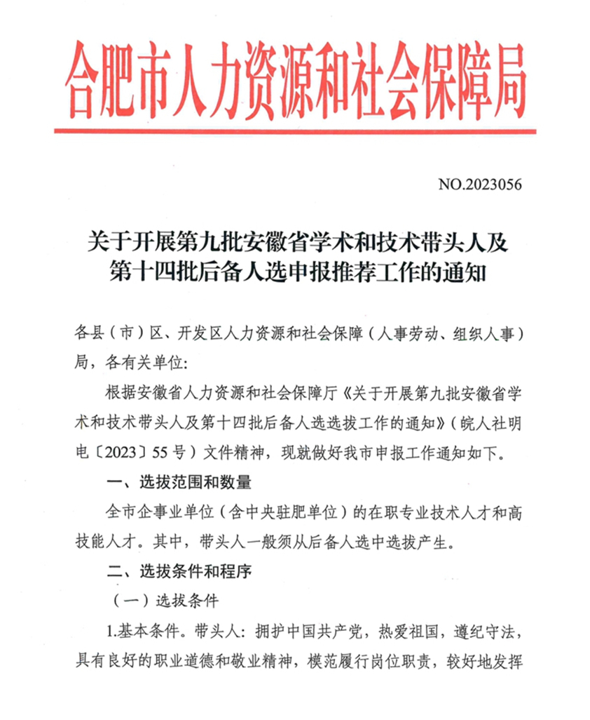 关于开展第九批安徽省学术和技术带头人及第十四批后备人选申报推荐工作的通知.pdf